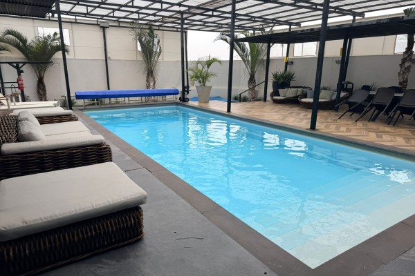 יש מיטת שיזוף בגינה, במתחם מטבח חיצוני משותף, ברביקיו, רהיטי גן מפנקים, יש שימשיות, שולחן ביליארד למשחק, ספסל בחצר, פינת ישיבה לנופשים שיש ממנה נוף.
