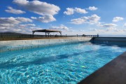 | בריכת שחייה מחוממת ומקורה אל מול האגם- משותפת לצימרים.