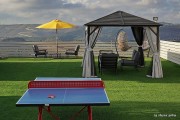 יש מיטת שיזוף בגינה, במתחם מטבח חיצוני משותף, נדנדה לגינה, דשא במתחם, ברביקיו, יש תאורה, רהיטי גן מפנקים, יש שימשיות, שולחן פינג פונג, בגינה תלויים ערסלים, פינת ישיבה לנופשים. מטבח משותף -מתחם מקורה וממוזג פינת אוכל גדולה , תנור אפייה , כיריים חשמליות , כיור , 2 מקררים , מיחם ופלטה לשבת , תמי 4 , פינת קפה , כלי בישול וכלי הגשה