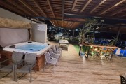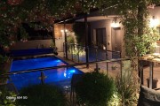 דשא במתחם, סוככי שמש, רהיטי גן מפנקים, עצים, צמחי נוי צבעוניים, שולחן פינג פונג, בגינה תלויים ערסלים, ספסלי גינה. טלוויזיה ענקית חיצונית 80 אינץ` מטבח חיצוני באיזבור מלא שולחן כדורגל מקצועי מזגן חיצוני