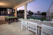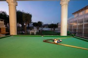 יש מיטת שיזוף בגינה, במתחם מטבח חיצוני משותף, דשא במתחם, ברביקיו, סוככי שמש, יש תאורה, רהיטי גן מפנקים, יש שימשיות, גינת צמחי תבלין, עצים, צמחי נוי צבעוניים, שולחן פינג פונג, שולחן ביליארד למשחק, פינת ישיבה לנופשים שיש ממנה נוף.