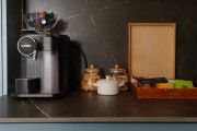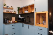 מטבח משותף ממוזג מאובזר ב- כיור, תנור, כיריים גז + אינדוקציה, מנגל פחמים, בר מים, כלי בישול והגשה, מיקרוגל, טוסטר, טוסטר אובן, פינת קפה ומכונת קפה.