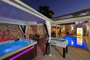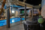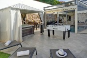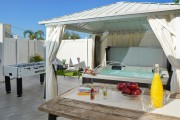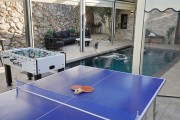 יש מיטת שיזוף בגינה, נדנדה לגינה, סוככי שמש, רהיטי גן מפנקים, עצים, צמחי נוי צבעוניים, שולחן פינג פונג, שולחן ביליארד למשחק, פינת אוכל , בגינה תלוי ערסל, ספסל בחצר, פינת ישיבה לנופשים.