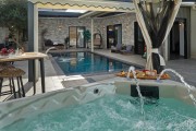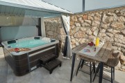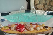 | גקוזי ספא זרמים לנופשי הצימר. הג`קוזי מקורה בגזיבו עם מערכת שמע.