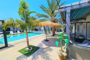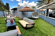 במתחם מטבח חיצוני משותף, נדנדה לגינה, דשא במתחם, ברביקיו, רהיטי גן מפנקים, יש שימשיות, עצים, שולחן פינג פונג, פינת אוכל , בגינה תלויים ערסלים. מיטות שיזוף, פינות ישיבה מרובות, קונכיות ישיבה. פינת טלוויזיה חיצונית עם טלוויזיה 60 אינץ` חיבור לHOT, יוטיוב, SMART TV.