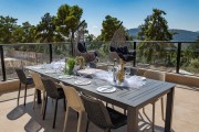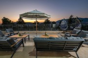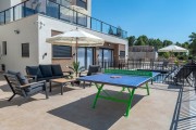 ברביקיו, רהיטי גן מפנקים, יש שימשיות, עצים, צמחי נוי צבעוניים, שולחן פינג פונג, פינת אוכל , בגינה תלויים ערסלים. מיטות שיזוף, פינות ישיבה.