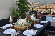 דשא במתחם, ברביקיו, רהיטי גן מפנקים, עצים, צמחי נוי צבעוניים, שולחן פינג פונג, פינת אוכל , ספסל בחצר. מיטות שיזוף, פינות ישיבה.