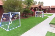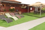 נדנדה לגינה, דשא במתחם, סוככי שמש, רהיטי גן מפנקים, יש שימשיות, עצים, צמחי נוי צבעוניים, שולחן פינג פונג, בגינה תלוי ערסל, ספסלי גינה, פינת ישיבה לנופשים. מיטות שיזוף, שערי כדורגל, כדורגל שולחן.