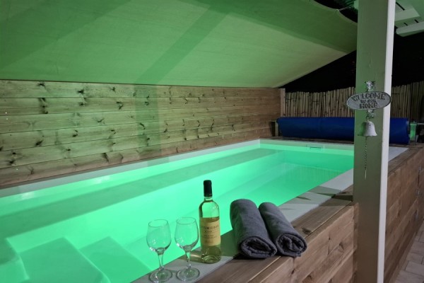 חצר פרטית ובה: בריכת שחייה מפנקת, מחוממת ומקורה . פינת ישיבה. ----------