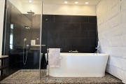 חדר רחצה רגיל: יש מגבות - אין צורך להביא איתכם, פן לייבוש השיער, שמפו לשימוש, תחליבים סבוניים, ראש גשם למקלחת, מכונת כביסה, מייבש כביסה. 4 חדרי רחצה ושירותים: בחלק מחדרי הרחצה יש מקלחונים ובחלק אמבטיות ובחלק גם וגם.
