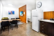 חדר אוכל סגור ומקורה: פינות ישיבה, שולחנות וכיסאות מטבח מאובזר- מנגל גז ופחמים, מקררים, מקפיא, תנור אפייה, כיריים גז, מיקרוגל, קומקום חשמלי ומכונת קרח.