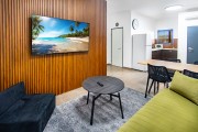 סוויטה 3 : סוויטה עם 2 חדרי שינה, המתאימה לעד 10 אורחים. המקום מכיל: ארון בגדים מזגן בכל חדר פינת אוכל סלון מעוצב עם ספה הנפתחת למיטה זוגית ועוד ספה הנפתחת למיטת יחיד. 2 חדרי שינה: חדר שינה עם מיטה זוגית חדר ילדים עם מיטות קומותיים. מולטימדיה: חבילת ערוצים כבלים, SMART TV, יוטיוב, טלוויזיה 65 אינץ. מטבח: פינת קפה, קומקום חשמלי, מקרר, מקפיא, מיקרוגל, כיריים חשמליות. חדר רחצה: מגבות, שמפו, תחליב רחצה.