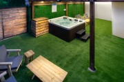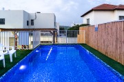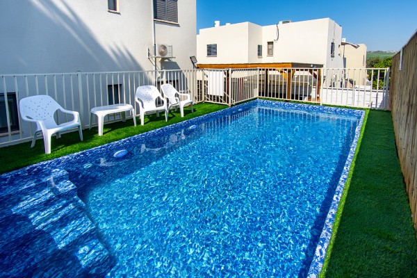 | חצר משותפת ובה: בריכה שחייה גדולה, בגודל 7*3, בחודשי החורף הבריכה מחוממת ומקורה. ג`קוזי ספא ענק מקורה.
