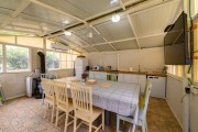 יש מיטת שיזוף בגינה, במתחם מטבח חיצוני משותף, דשא במתחם, ברביקיו, רהיטי גן מפנקים, גינת צמחי תבלין, עצים, צמחי נוי צבעוניים, שולחן פינג פונג, בגינה תלוי ערסל, ספסל בחצר, פינת ישיבה לנופשים.
